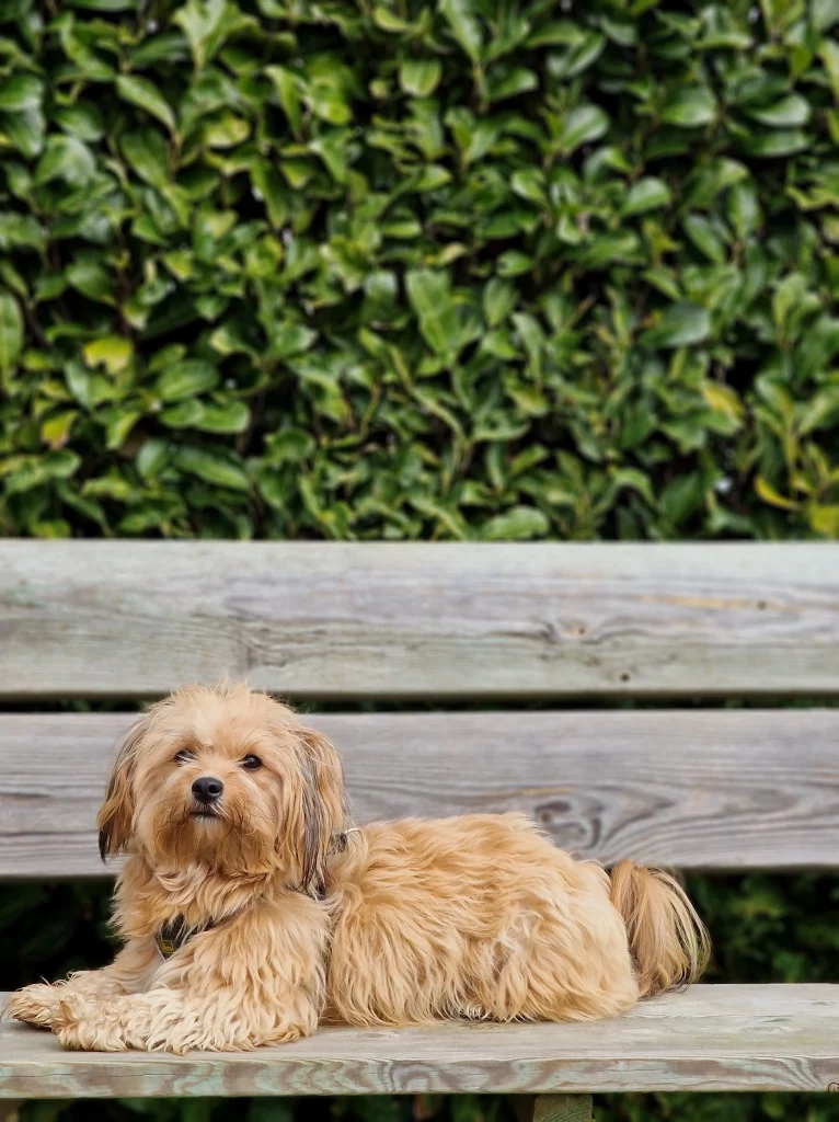 Nach dem Frühstück waren wir dann noch ein bisschen spazieren. Mama hat mir gezeigt, wo sie früher immer mit dem Fahrrad unterwegs war. Da hab ich die perfekte Bank gefunden.